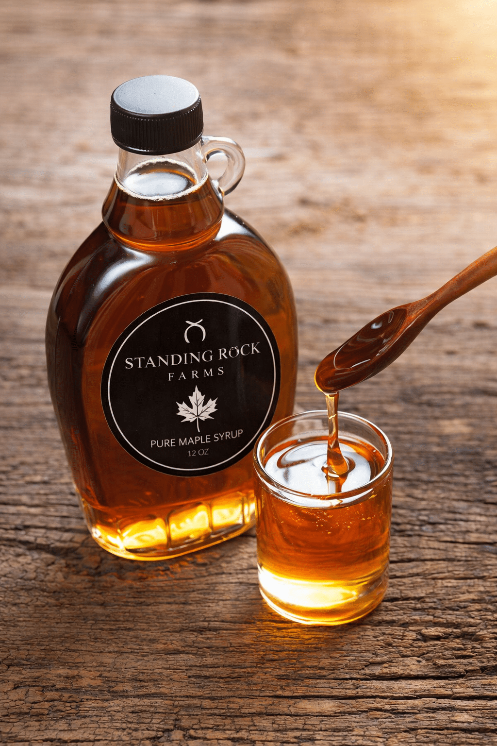 This process is part of our working farm operations and reflects our commitment to stewarding the land through sustainable agricultural practices. Small batches of maple syrup are produced each season, offering a sweet taste of the farm and the natural rhythms that shape life at Standing Rock Farms.