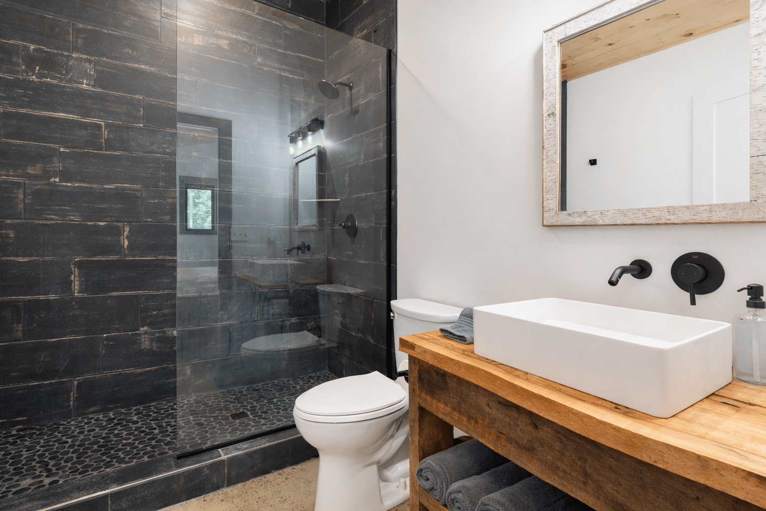 These cabins feature a king-size bed with luxurious bedding, providing a restful night’s sleep. The spacious bathroom includes a luxurious stone and glass shower, adding a touch of elegance to your stay.
